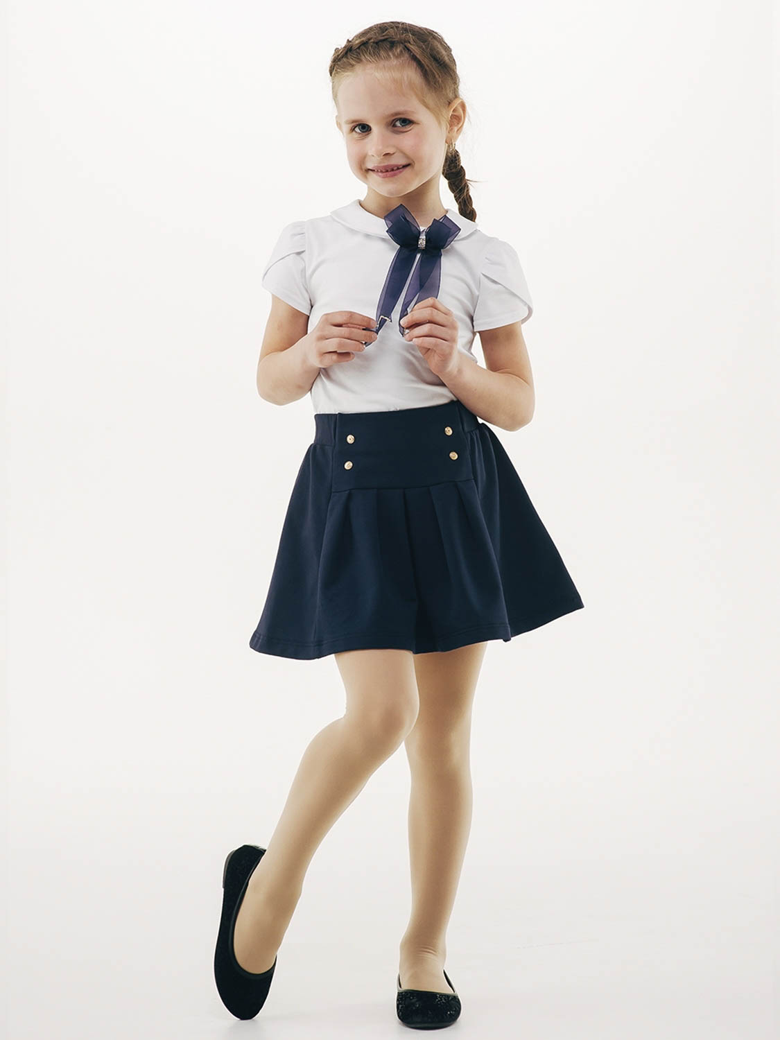 Блуза короткий рукав, стрейчевый кулир-sued (напыление),фатиновый бант с стразами