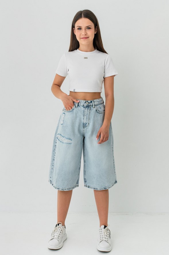 Шорти «Скай» повсякденного призначення, виконані з м’якого світлого деніму.
