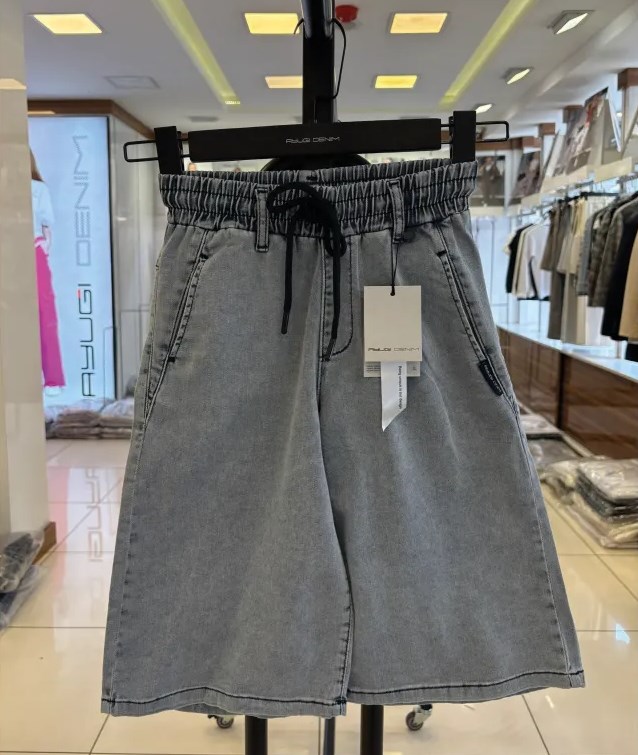 Шорти розширеного до низу силуету довжиною нижче коліна. Спереду та ззаду має по дві функціональні кишені. Має вшиту резинку-утяжку в поясі. Джинсова тканина має стильні декоративні потертості, що додає моделі трендовості.