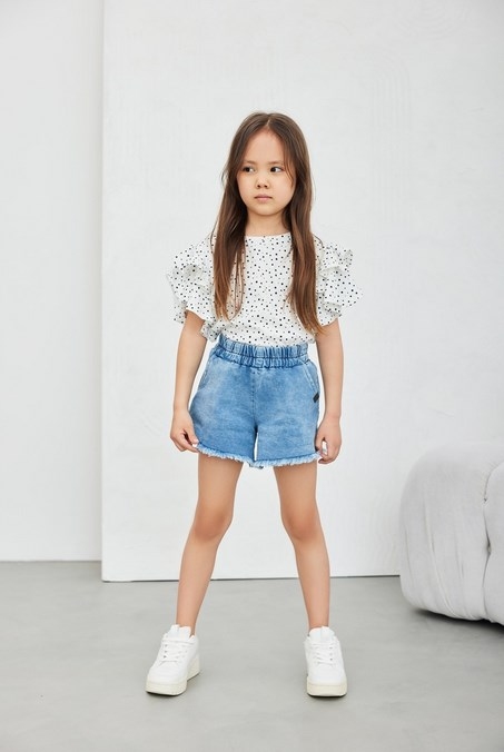 Джинсові шорти-кльош для дівчат All for kids - це новинка від польского виробника сезону літо 2023. Трендова модель розширена до низу, шорти на комфортному поясі-резинці. Чудово поєднуються з футболками та бузами.