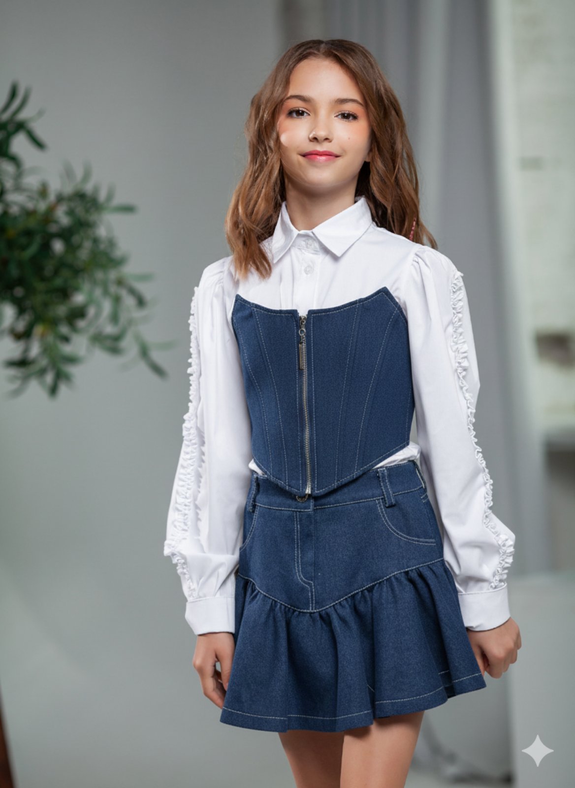 Джинсовий топ-корсет для дівчат-підлітків Wellkids, колір синійДля дівчат 8-15 років.Склад: 95% бавовна5% еластан