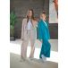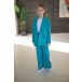Стильний класичний костюм для дівчинки від української дизайнерки Тетяни Філатової. У комплект входить жакет вільного крою, прикрашений гудзиками кольору та широкі штани-палаццо на комфортній широкій резинці-поясі. Є 2 врізні бічні кишені. Чудово поєднуються з футболкою даного виробника з нової весняно-літньої колекції.