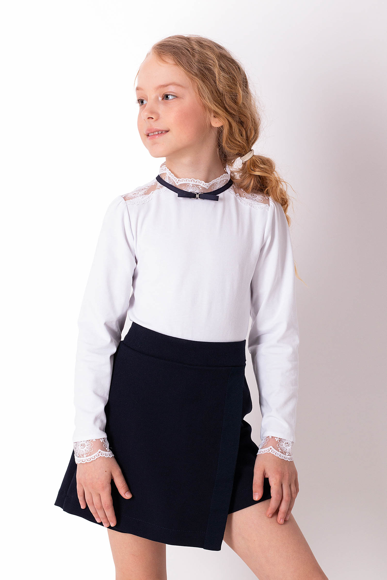 Стильный гольф с длинным рукавом для девочек Мевис из новой школьной коллекции 2021 года. Гольф под горло, застегивается сзади на пуговку. Декорирован нежным кружевом.