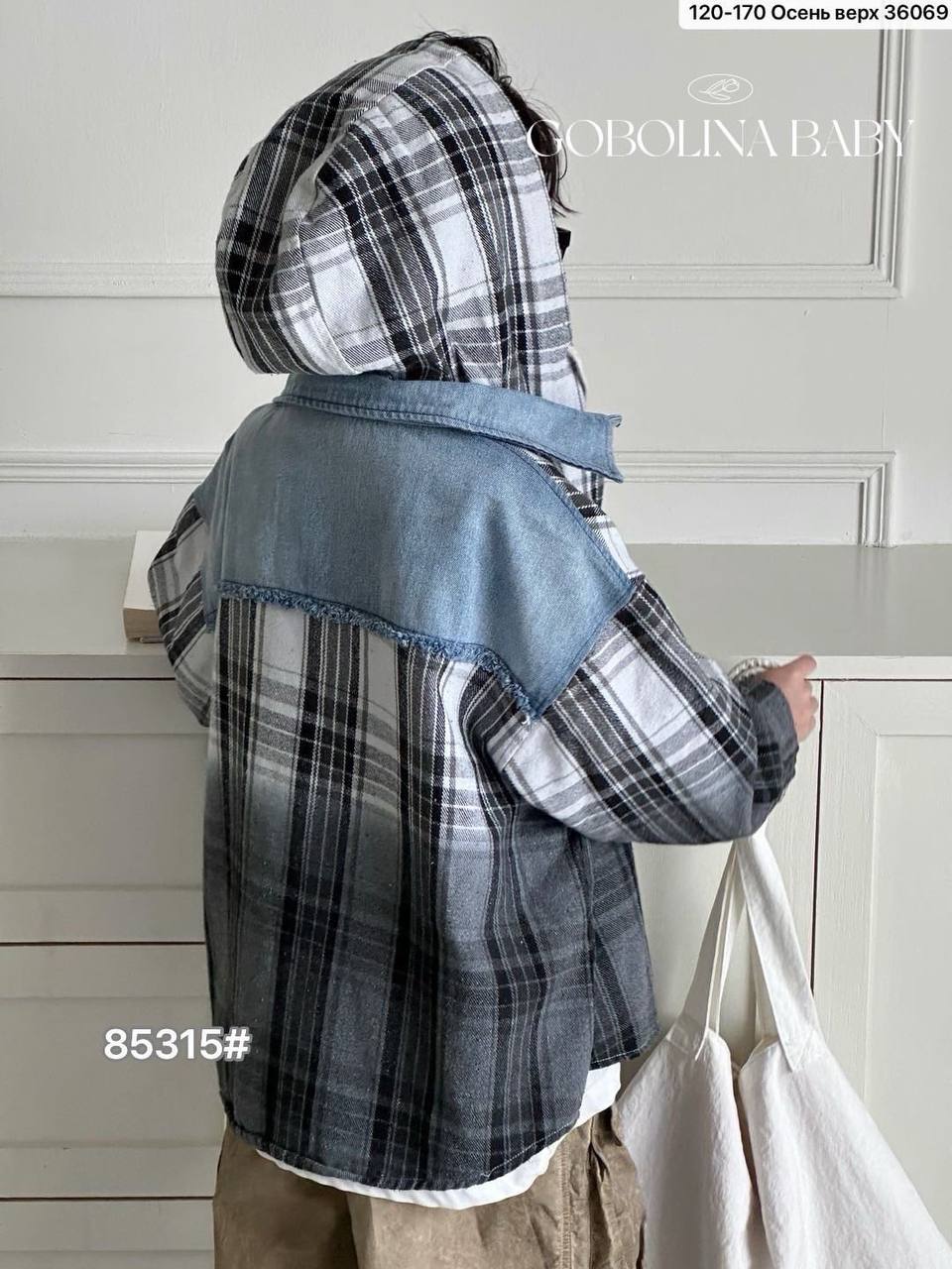 Сорочка силуету "оверсайз", довжиною нижче лінії стегон. Застібка центральна на кнопках. Комір сорочковий. Трикотажний капюшон. Рукав вшивний довгий, внизу на манжеті, яка застібається на кнопки. Зліва є нагрудна накладна кишеня з клапаном, що застібається на гудзик. Низ сорочки та спинки має фігурну форму.