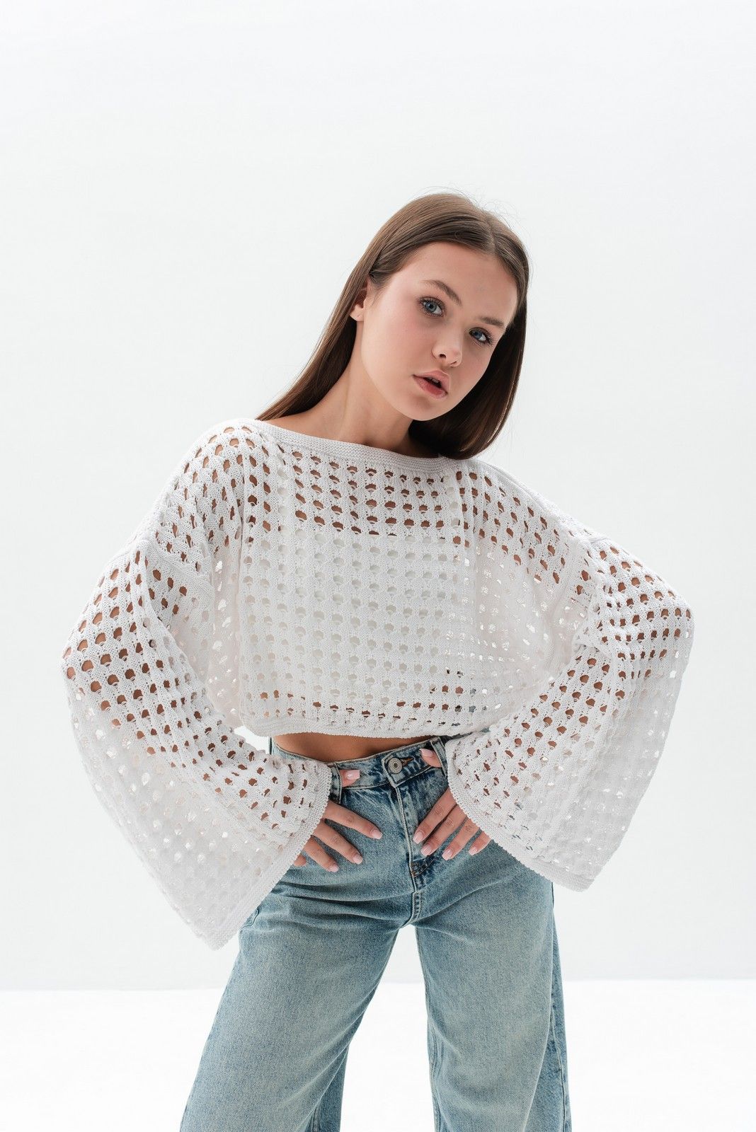 Кофта «Тріша». Вʼязана кофтинка прямого силуету. Модель з повторюваним візерунком та спущеним плечевим швом. Рукав дещо розширений донизу.