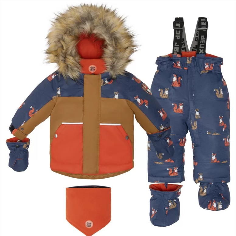 Комплектация куртка, полукомбинезон, рукавички, пинетки, манишка, мех отстегивается.