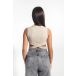 Кроп-топ для дівчат Suzie Ванесса TP012-Y4F22, колір бежевий прилеглого силуету, довжиною вище лінії талії повсякденного призначення. Низ топа прикрашено пришивними планками, які перехрещуються по переду і заду.
