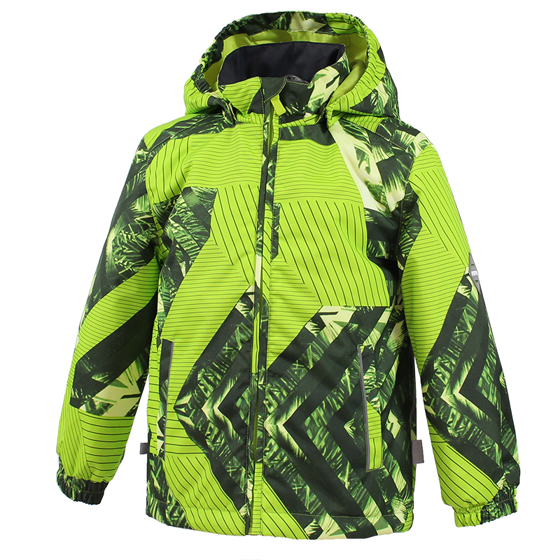 Утеплитель 40 г комфортен для прогулок при температуре воздуха от +5 до +15°С. Подкладка из тафты. Съемный капюшон по бокам стянут резинкой для более плотного прилегания к голове. Куртка с кокеткой. Застежка-молния снабжена защитным клапаном. Манжеты собраны на двойную резинку. Нижний край спинки плавно вырезан. В кулиску по нижнему краю продет эластичный шнур. Светоотражающие канты и детали служат для безопасности ребенка. Размерный ряд модели: 80-152.