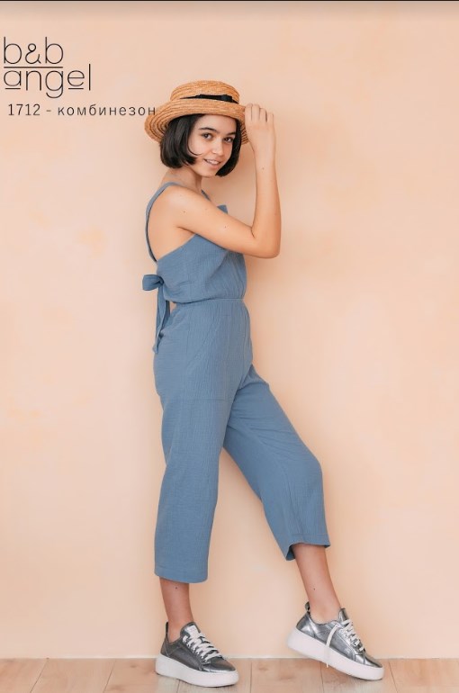 Легкий летний комбинезон для девочки из невесомого коттона из новой летней коллекции Baby Angel. Комбинезон на широких бретелях, с укороченными брючками длиной 7/8, спина открытая.