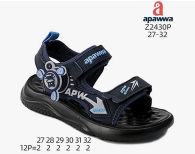 Літні босоніжки для хлопців Apawwa 2430, колір синій з нової колекції 2025 року. Apawwa - європейский бренд, взуття для якого виробляє найбільша взуттева фабрика Китаю.