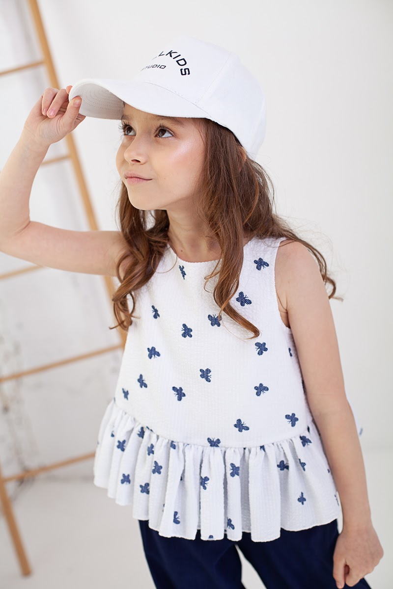 Літній кроп-топ Wellkids Метелики, колір білий для дівчат від українського бренду з нової літньої колекції. Вільна крою блуза з тонкого коттону. Дуже гарна спинка на запах.
