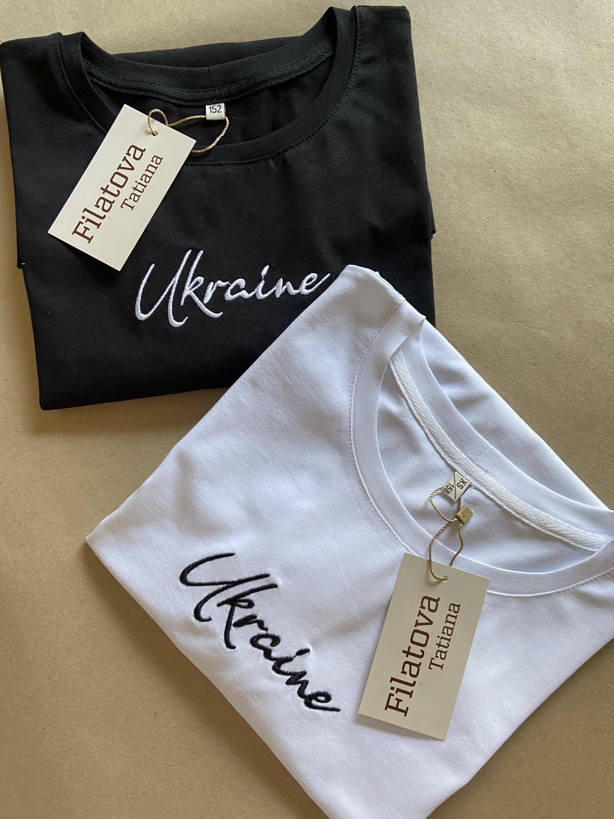 Футболка-oversize для хлопців та дівчат Filatova, колір сірий. Якісна тканина та пошив. Базова річ, на яку нанесена вишивка - слово Ukraine. Короткий рукав, спущена лінія плеча, футболка має вільний фасон.