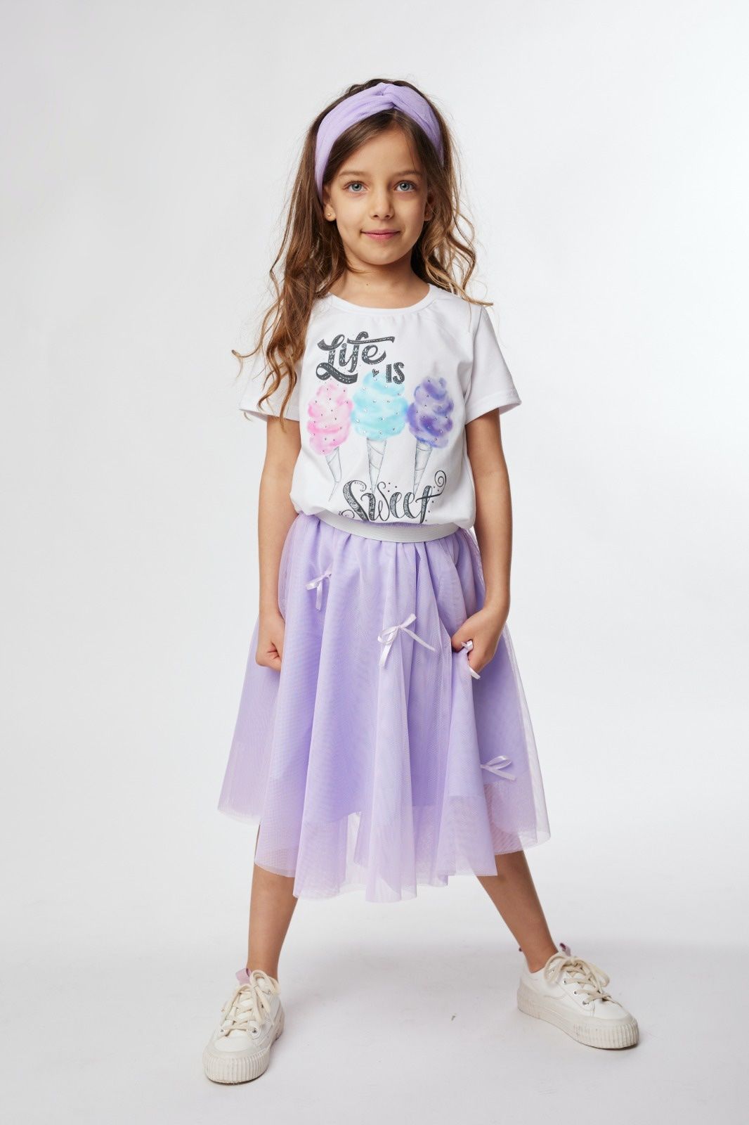 Літня футболка MalaMi 2418, колір білий з нової літньої колекції 2023 роки. Якісна тканина та пошив. Короткий рукав, приталений сілует. Обов`язково сподобається дівчаткам. Чудово поєднується із трикотажними шортами та джинсами.