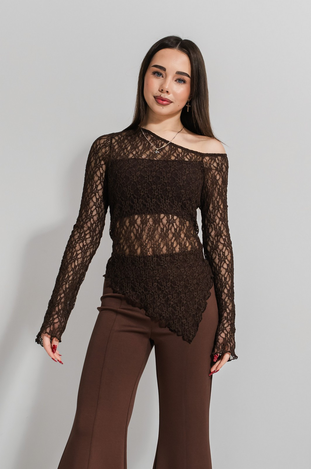 Кофта «Лоріта» повсякденного призначення, виконана з мʼякого еластичного гіпюру та трикотажу.