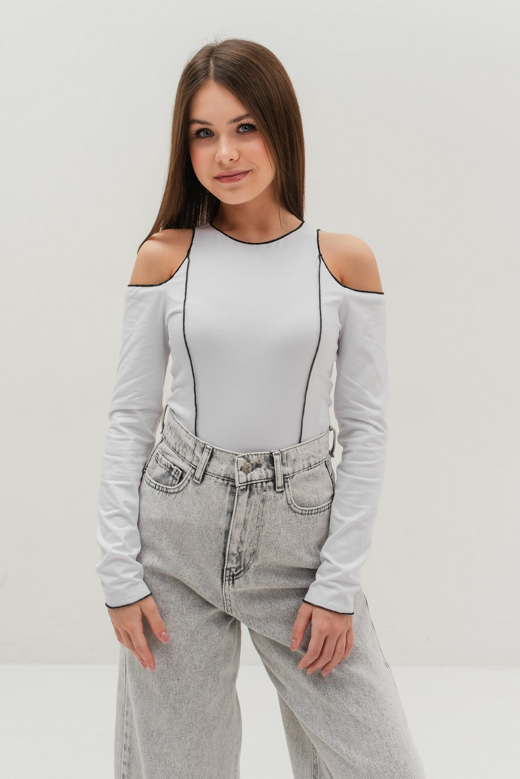 «Ніса» прилеглого силуету. Рукав вшивний, одношовний, з декоративним членуванням по плечу і рукаву. Виріз горловини круглий. Передня половинка декорована рельєфними строчками контрасного кольору, що додають образу трендового вигляду. Низ виробу, рукавів, край вирізів та горловини також оброблено пікіровкою.