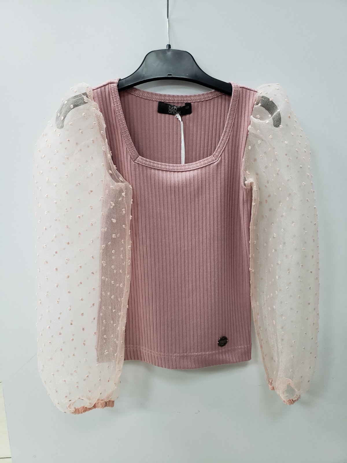 Стильная свитшот из трехнитки для девочки Baby angel артикул 2049 из новой коллекции Беби Ангел 2022 года в розовом цвете. Модный свободный фасон. Прозрачные вставки на рукавах и оригинальный декор в виде металлизированной бахромы.