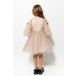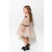 Ліф сукні фігурний по низу, горловина кругла з V подібним маленьким вирізом спереду. Сукня на підкладці. Рукав 3/4 напівпрозорий.
