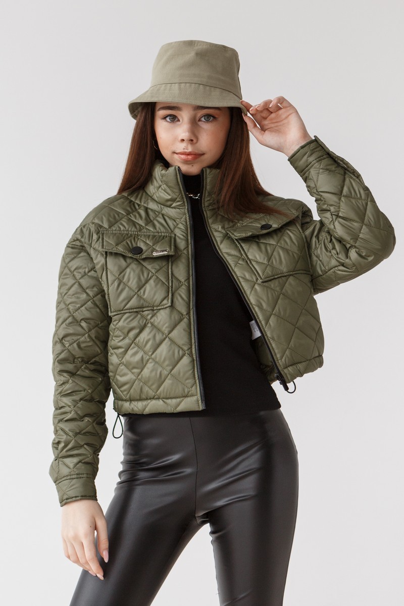 Укороченная стеганная курточка для девочки свободного кроя из новой осенней коллекции Suzie, модель Лорайн. Центральный замок-молния. Воротник-стойка защищает шею от ветра. Спереди два накладных нагрудных кармана. Линия плеча спущена. Снизу курточки вшита резиновая тесьма с фиксаторами по бокам. Манжеты на рукавах застегиваются с помощью кнопок.