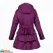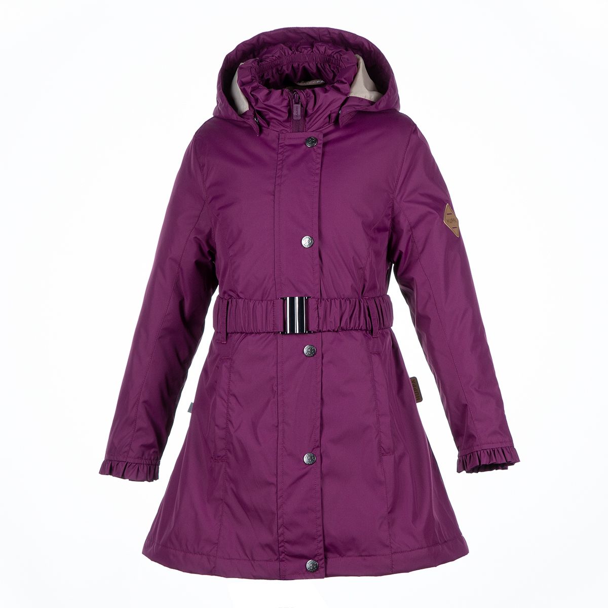Пальто с утеплителем 40 г подходит для весны и осени, рекомендуемая температура -5 / +15°С. Отстегивающийся капюшон украшен небольшой оборкой. Застежка на молнию укреплена рядом кнопок. Талия подчеркнута поясом с пряжкой, пальто расклешено от талии. На уровне бедер в рельефных швах вшиты карманы на молниях. Внутренний карман тоже застегивается на молнию. Манжеты с оборками можно отвернуть для увеличения длины рукавов. Нижнюю часть спинки украшают несколько ярусов оборок. Линия низа плавно вырезана, спереди пальто чуть короче, чем сзади. Светоотражающие детали предназначены для безопасности ребенка