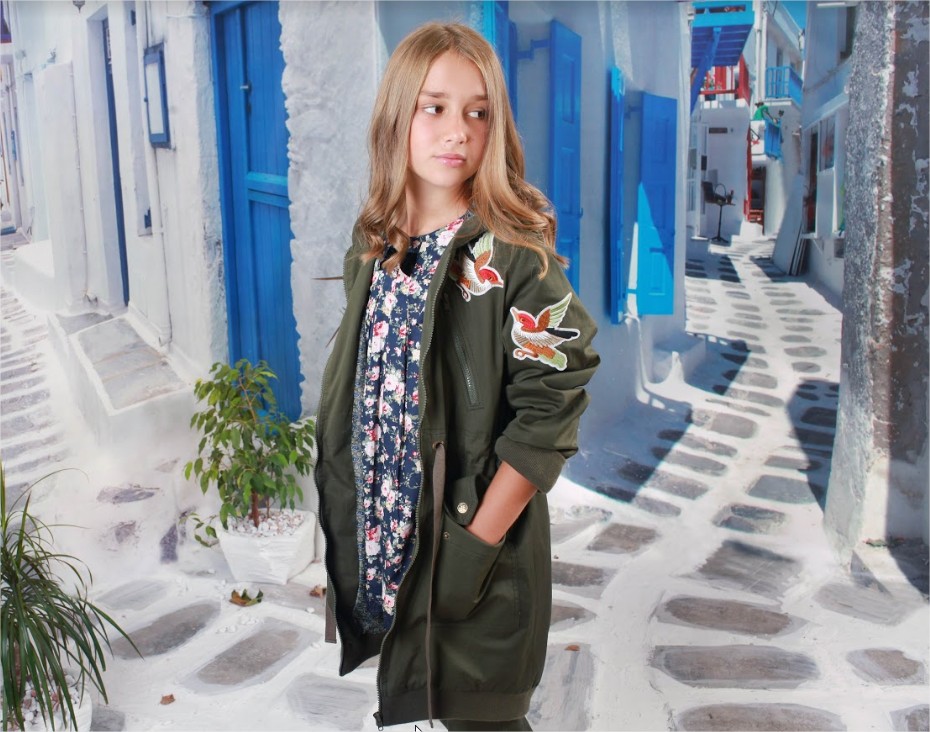 Модный фасон парки в цвете хаки с яркими нашивками, несомненно, понравится девочкам-подросткам. Трикотажный манжет, капюшон, утяжка на поясе - не только красиво, но и удобно, комфортно в носке.