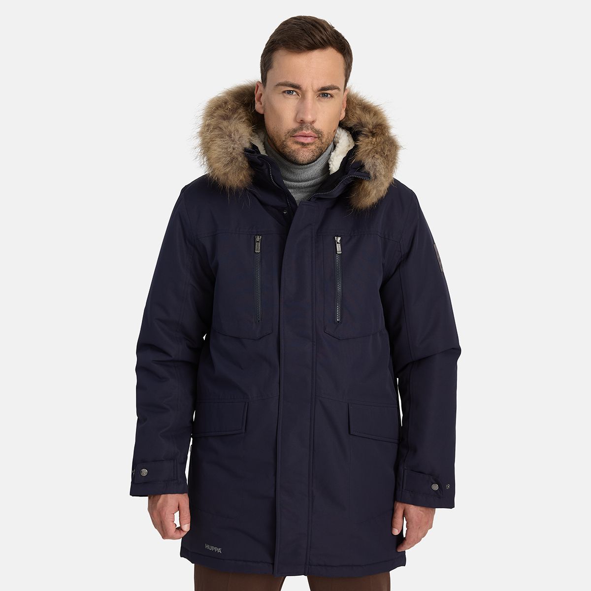 Подовжена зимова парка для чоловіків Huppa DAVID 12278120 дуже тепла, не вимагає додаткових піддьов, має сучасний дизайн із зовнішньою тканиною — мембраною.