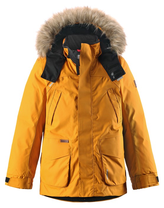 Безпечний капюшон, що відстібається і регулюється, зі знімним штучним хутром