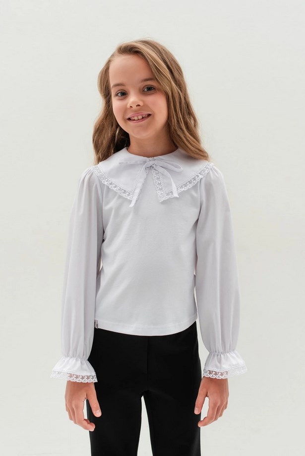 Шкільна блуза з довгим рукавом Suzie Сінді BL032-Y4F23 з нової шкільної колекції Сьюзі 2024 року. Відкладний комір, довгий рукав, застібається за допомогою блискавки позаду.