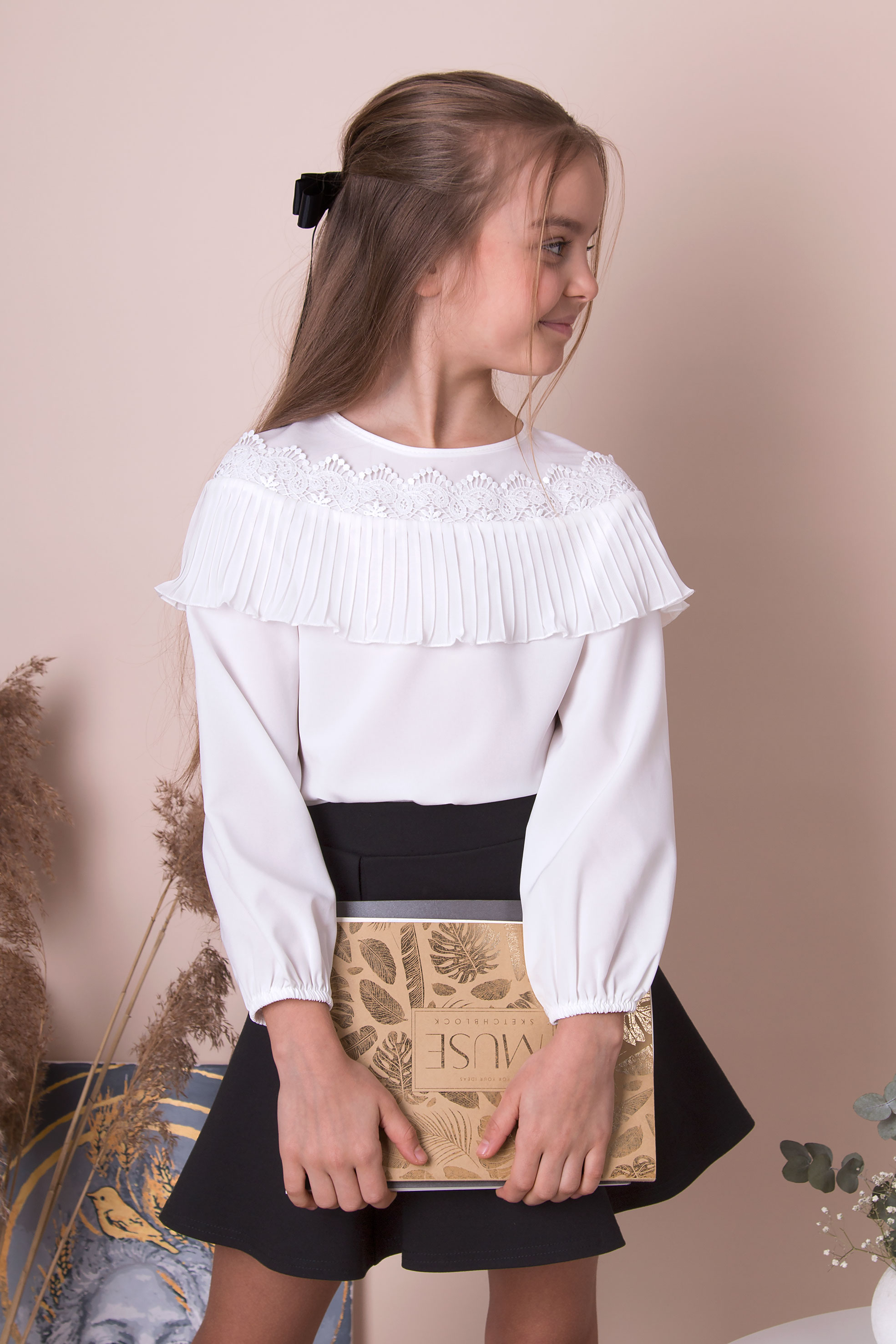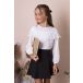 Шкільна блузка з довгим рукавом Mevis із нової колекції шкільної форми Мевіс. Вишукана блуза для школи Мевіс артикул 4932-01 білого кольору. Блузон із елегантними рукавами. Рукави декоровані ефектним мереживом. Рукавці блузки на резинці. Застібається ззаду на ґудзик.