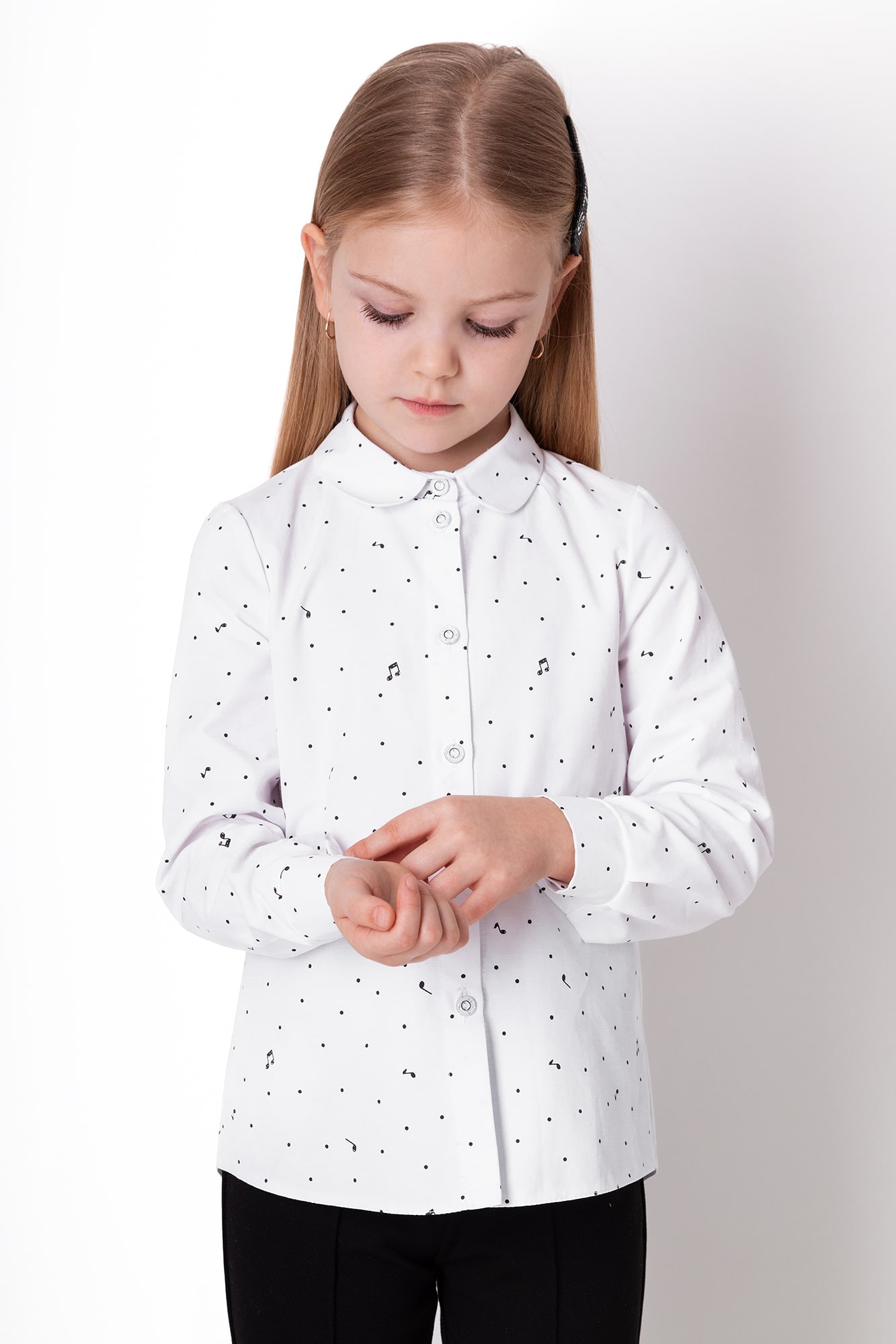 Школьна блузка Mevis артикул 4363-01 з нової шкільної колекції Мевіс. Рубашка з довгим рукавом для дівчат молодшого шкільного віку. Модель класичного прямого крою. Цікаві детальки блузки: веселий принт з кроликами в капелюхах, контрастні чорні гудзики спереду.