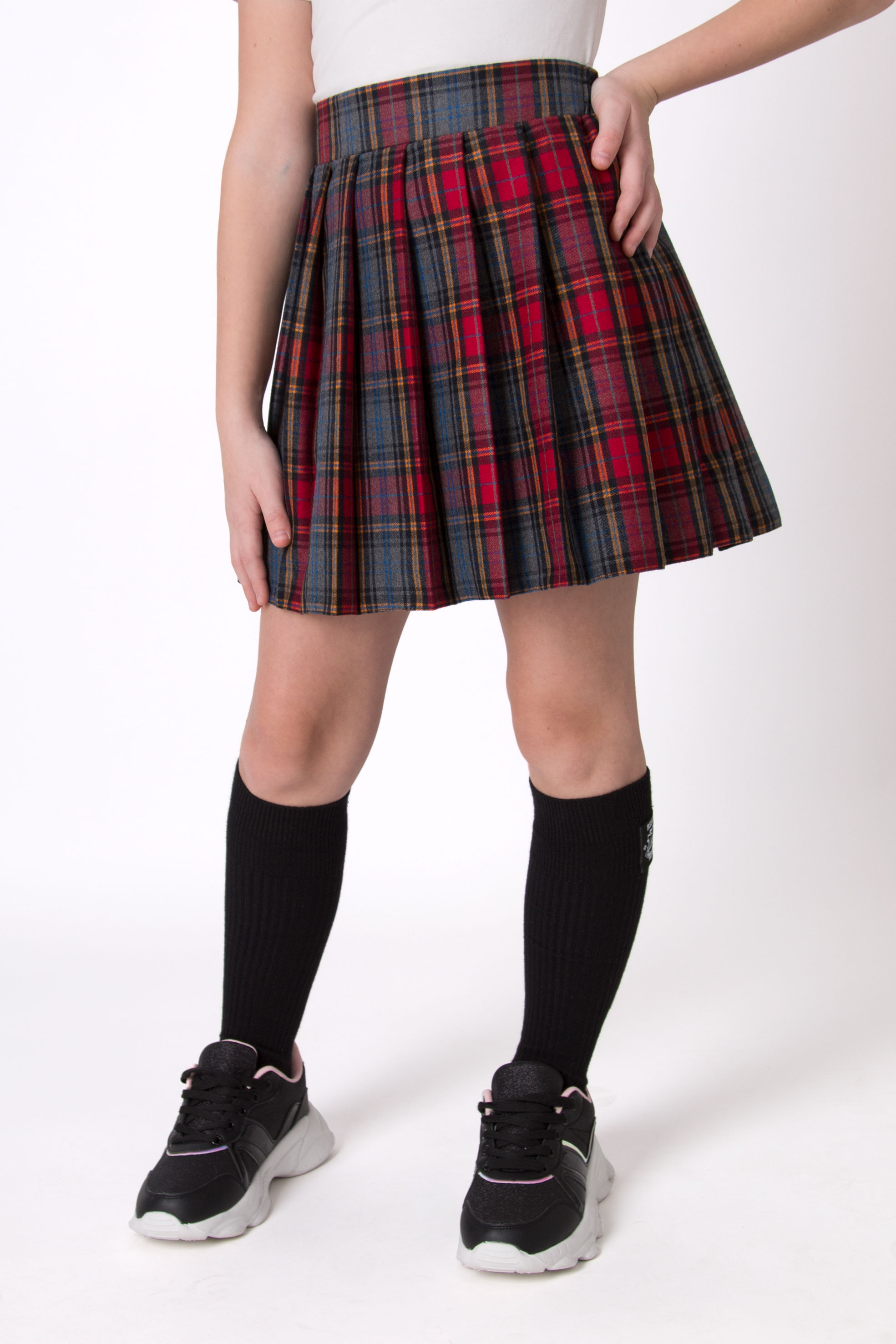 Стильна спідниця в клітку Мевис артикул 5047 з нової шкільної колекції Mevis для дівчат молодшого шкільного віку. Модель з високою посадкою і великими актуальними складками. Спідниця на поясі-резинці Матеріал – костюмна тканина. Цей виріб ідеально поєднуватиметься зі шкільними блузками ТМ Mevis.