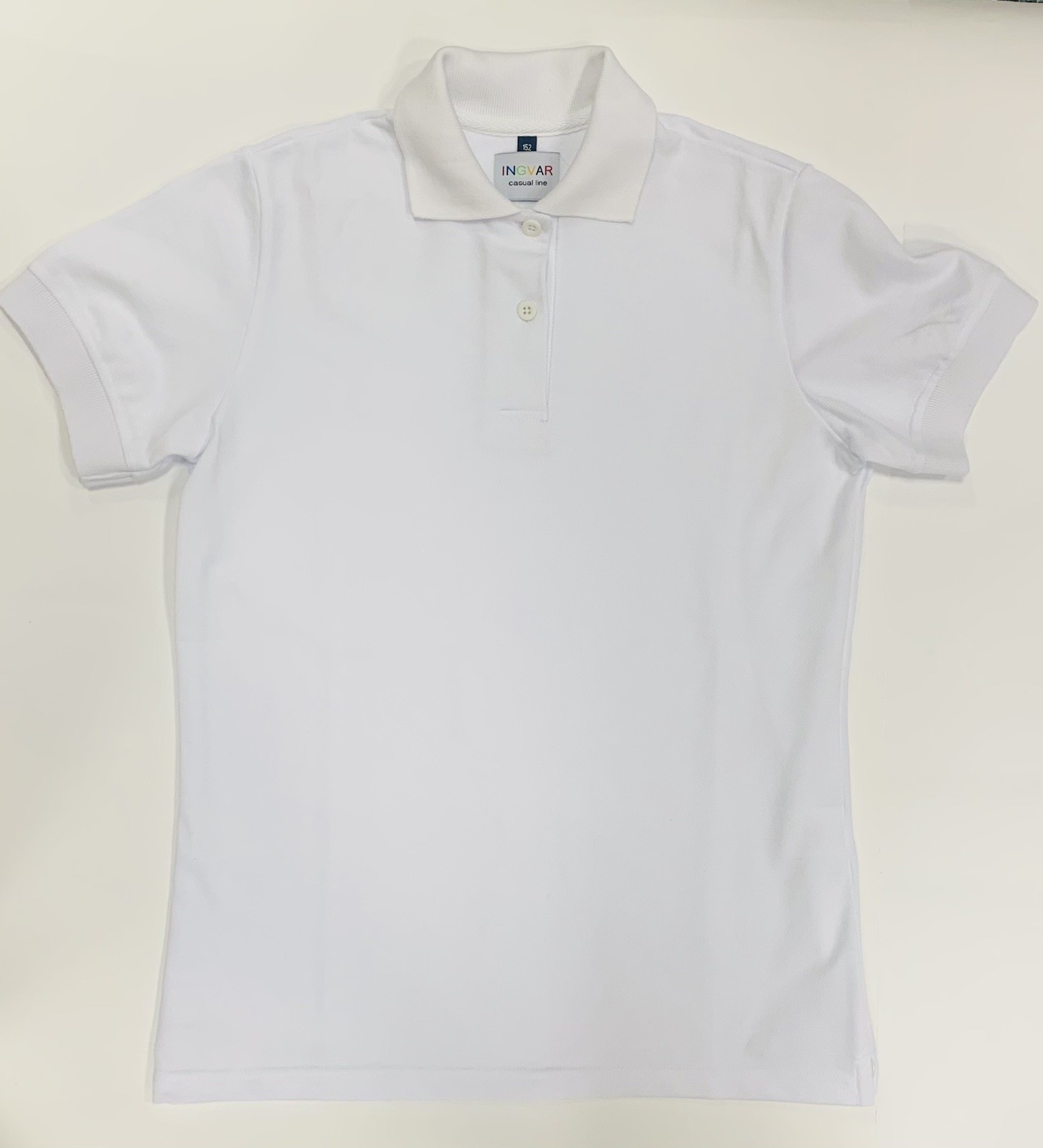 Біла класична футболка-поло для хлопчика із нової шкільної колекції Ingvar 2025 року. Виріб легко поєднується з повсякденним та спортивним одягом. Модель із короткими рукавами створена з бавовняної тканини Лакоста. Рукави та комір оздоблені темно-синьою тканиною.