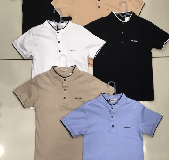 Шкільне поло для хлопців з коротким рукавом Tony Wanhil 5344, колір білий із нової шкільної колекції 2025 року. Виріб легко поєднується з повсякденним та спортивним одягом. Модель із короткими рукавами створена з бавовняної тканини Лакоста. Рукави та комір оздоблені темно-синьою тканиною.