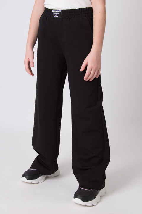 Стильні широкі штани-палаццо для дівчинки-підлітка із нової шкільної колекції Мевіс артикул 4982-01. Трикотажні, зручні штани на комфортній широкій резинці-поясі. Є 2 врізні бічні кишені. Відмінно поєднуються з трикотажними світшотами та бомберами фірми Mevis.