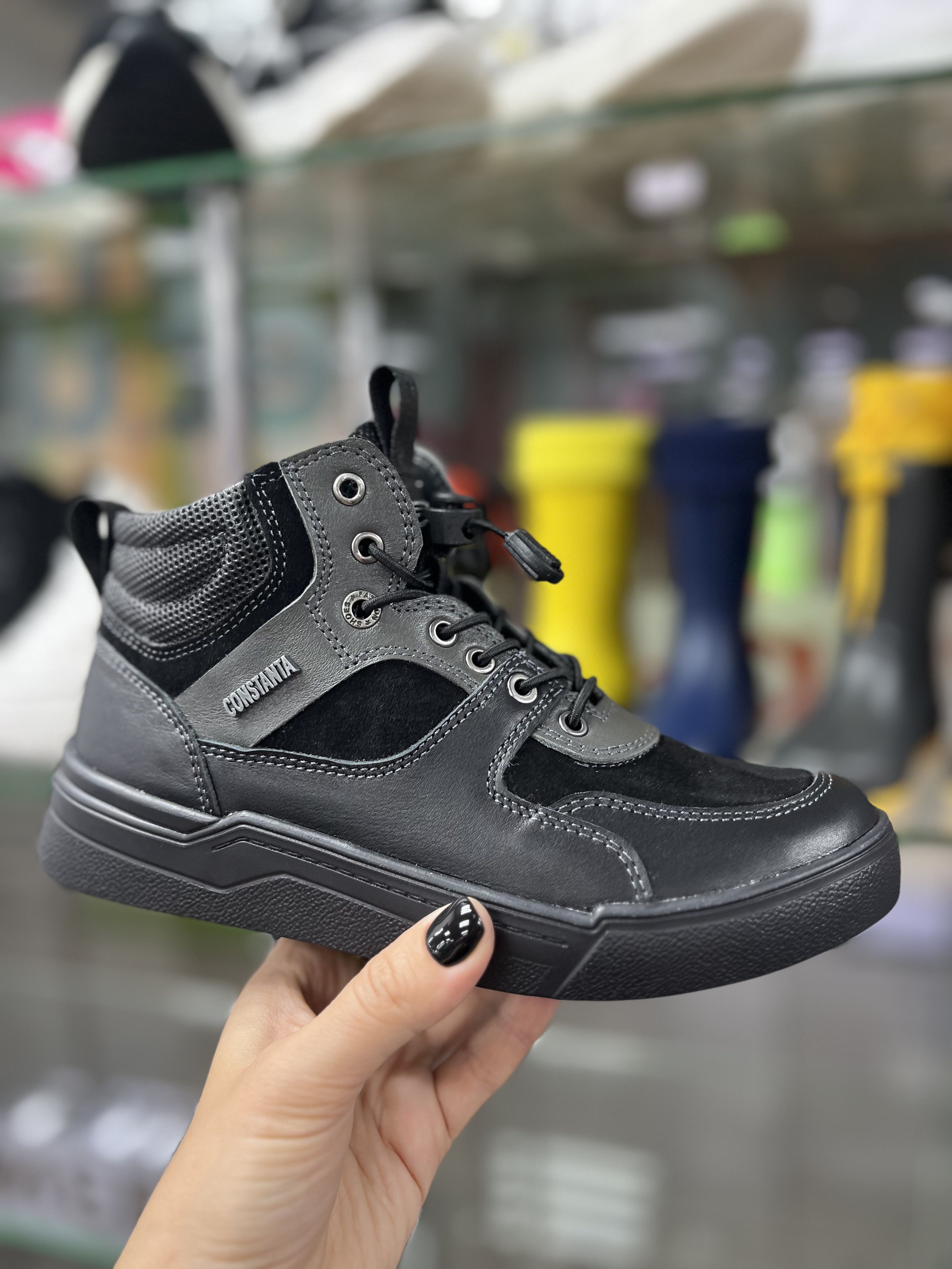 Шкіряні демісезоні кросівки Сonstanta 1881, колір чорний. Утеплена модель на байці. Верх виконані із натуральної шкіри, в середині - натуральна шкіра. Профілактична устілка.