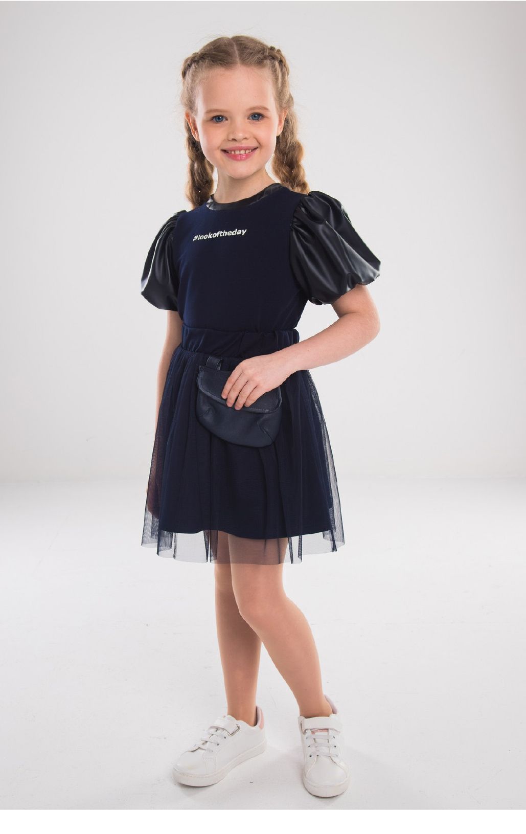 Модная школьная юбка Suzie Нанни из новой школьной коллекции Сьюзи сезона 2020 г. Фасон юбка-клеш, сверху фатин. Комфортный резиновый пояс. Поясок декорирован игривой маленькой сумочкой из єко-кожи. Отличный вариант для 1 сентября и для школьных будней.