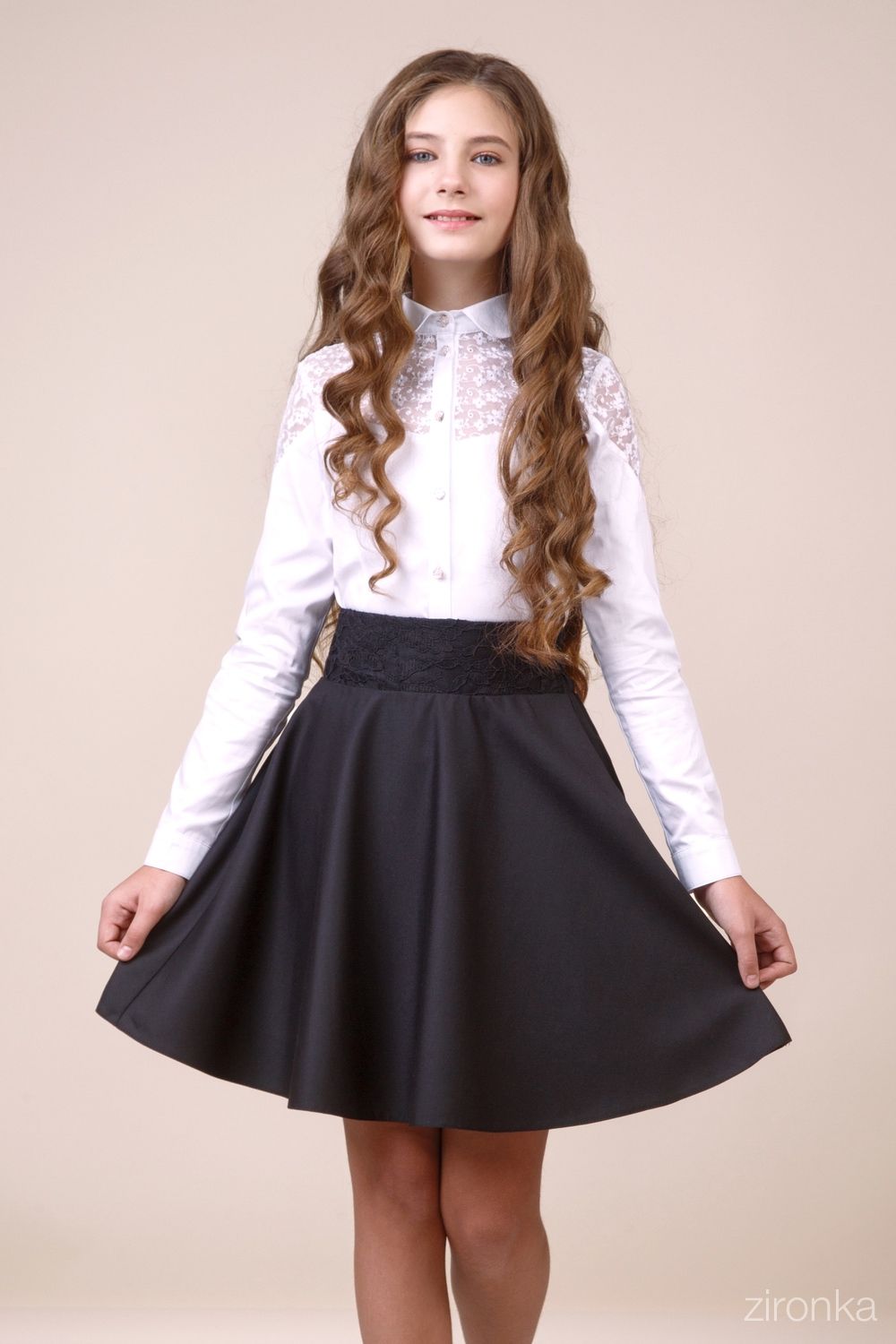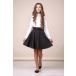 Школьная юбка ТМ Зиронька "Zironka" из костюмной ткани из новой коллекции Кружево 2019 года. Юбка с широким поясом, передняя часть которого декорирована кружевом. Модель с дополнительной стяжкой на талии для пышноты. Сзади - комфортная резинка. Есть подкладка.