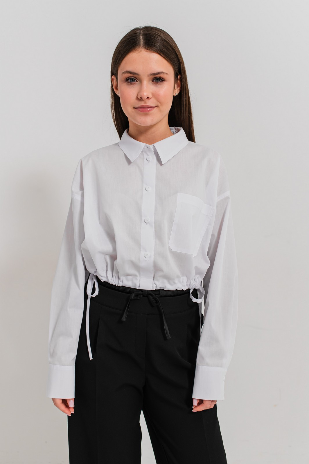 «Бренда» силуету оверсайз, довжиною до лінії талії. Сорочка з вшивним одношовним рукавом на широкій манжеті, що застібається на 2 гудзики. Ліва частина переду прикрашена накладною кишенею з скошеними кутами, що додає образу неординарного вигляду. Низ сорочки оброблений кулісками з шнурками, та невеличкими розрізами, для регулювання по лінії талії, щоб точно вигідно підкреслити фігуру!