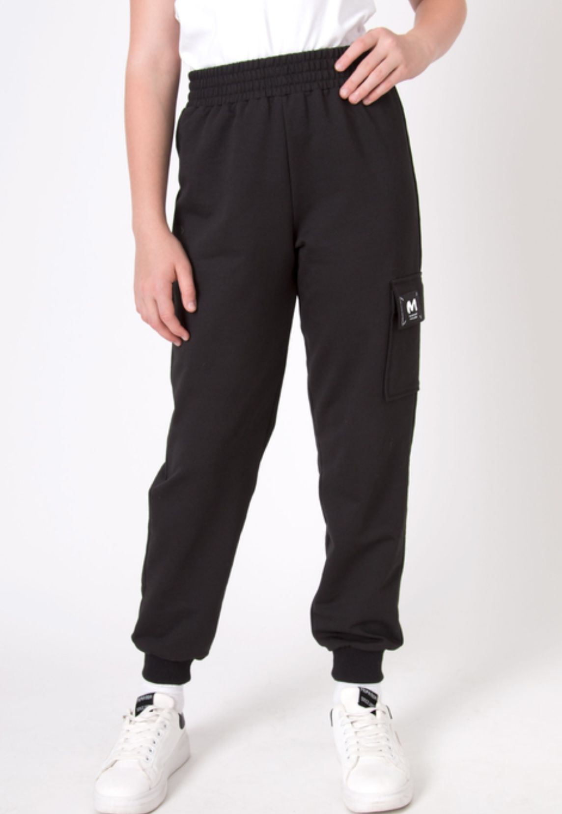 Комфортні брюки трикотажні для дітей Mevis 5233 з м'якою гумкою на поясі. Є шнурок у поясі, за допомогою якого можна регулювати ширину пояса.