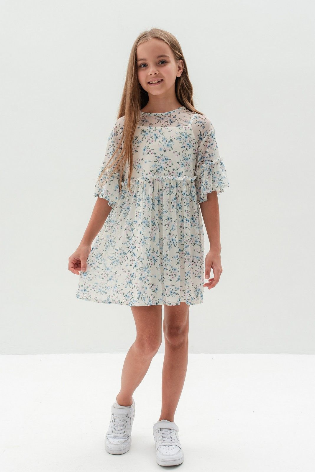 Комплект "Біззі" напівприлеглого силуету повсякденного призначення. Складається з нижнього плаття з трикотаж футболки і верхнього сукні з тканини сітки горох.