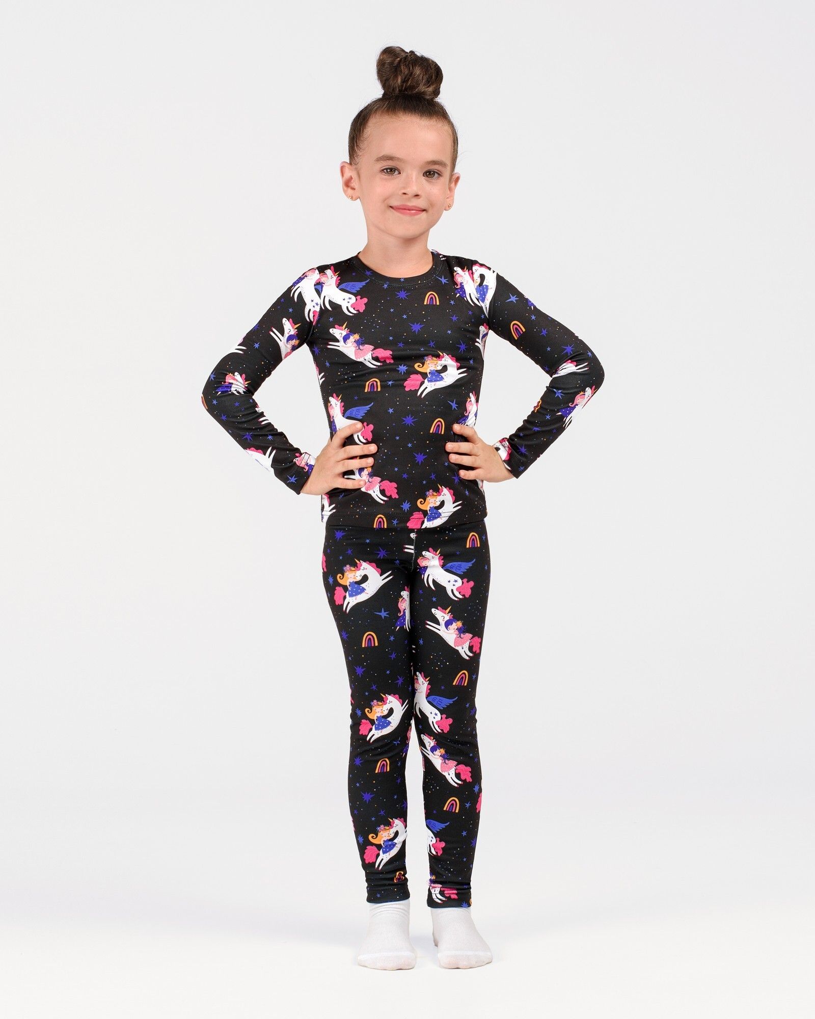 Термобілизна для дівчинки з оригінальним принтом – це стильний вибір для активного проведення часу в холодну пору року. Комплект включає лонгслів і легінси, виготовлені з преміум-матеріалу термоначіс, який забезпечує ідеальне збереження тепла та ефективне відведення вологи.