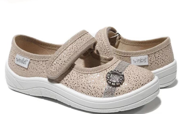 Тестильні туфлі для дівчат Waldi Аліна 24-30, колір золотий доступні в розмірах від 24 по 30. Натуральний дихаючий трьохслойний текстиль забезпечує циркуляцію повітря, максимальний комфорт. Секретна формула Валді в мякості, гнучкості та зносостійкості текстилю.