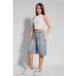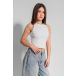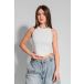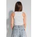 Топ на брителях. Передня половинка топа подвійна. Виріз горловини квадратний з скургленими кутами. Довжина вище лінії талії.