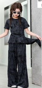 Трикотажний костюм-двійка для дівчат Gobolina Baby 012G60, колір чорний з нової весняної колекції 2026 року створений дарувати щастя. Укорочена футболка та комфортні штани-палаццо на резинці.