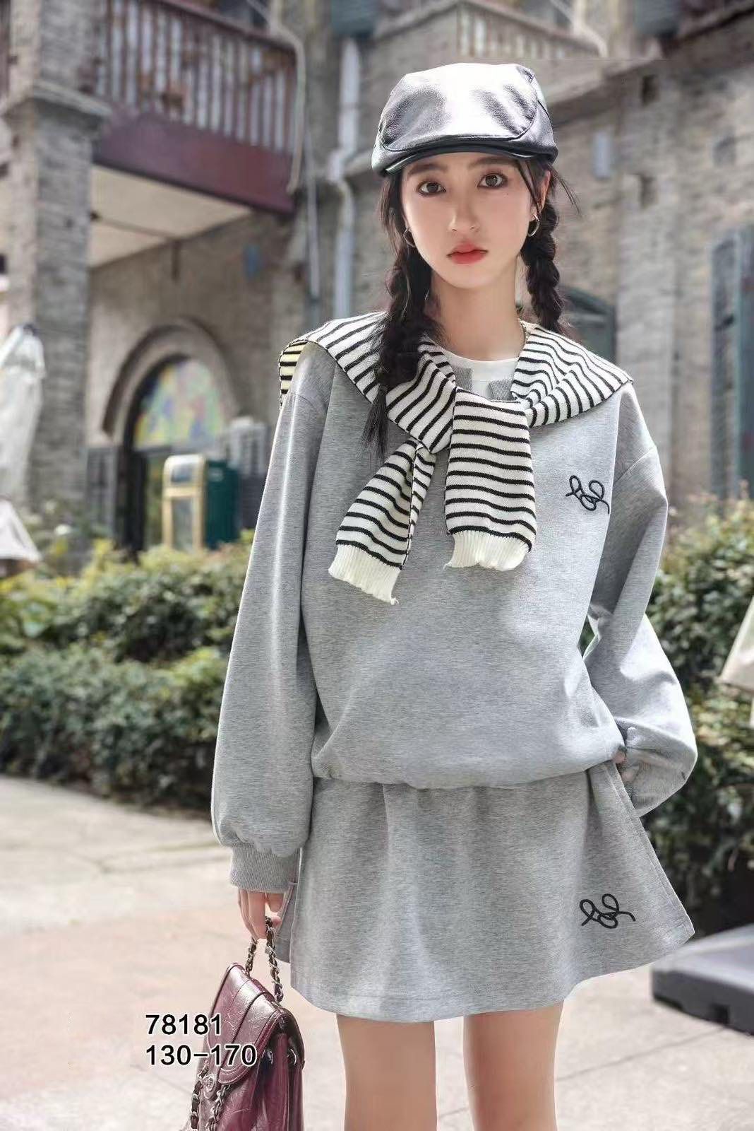 Трикотажний костюм-двійка для дівчат Gobolina Baby 47991, колір сірий з нової осінньої колекції 2025 року створений дарувати щастя. Світшот з високим коміром на блискавці та зручна спідничка-шорти.