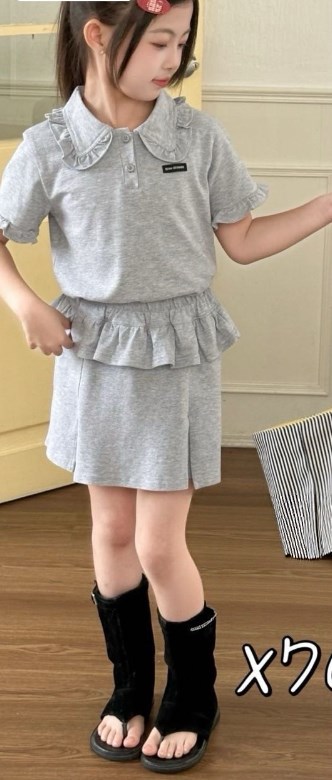 Трикотажний костюм-двійка для дівчат Gobolina Baby 7092, колір сірий з нової весняної колекції 2026 року створений дарувати щастя. Футболка-поло та зручна спідничка-шорти.