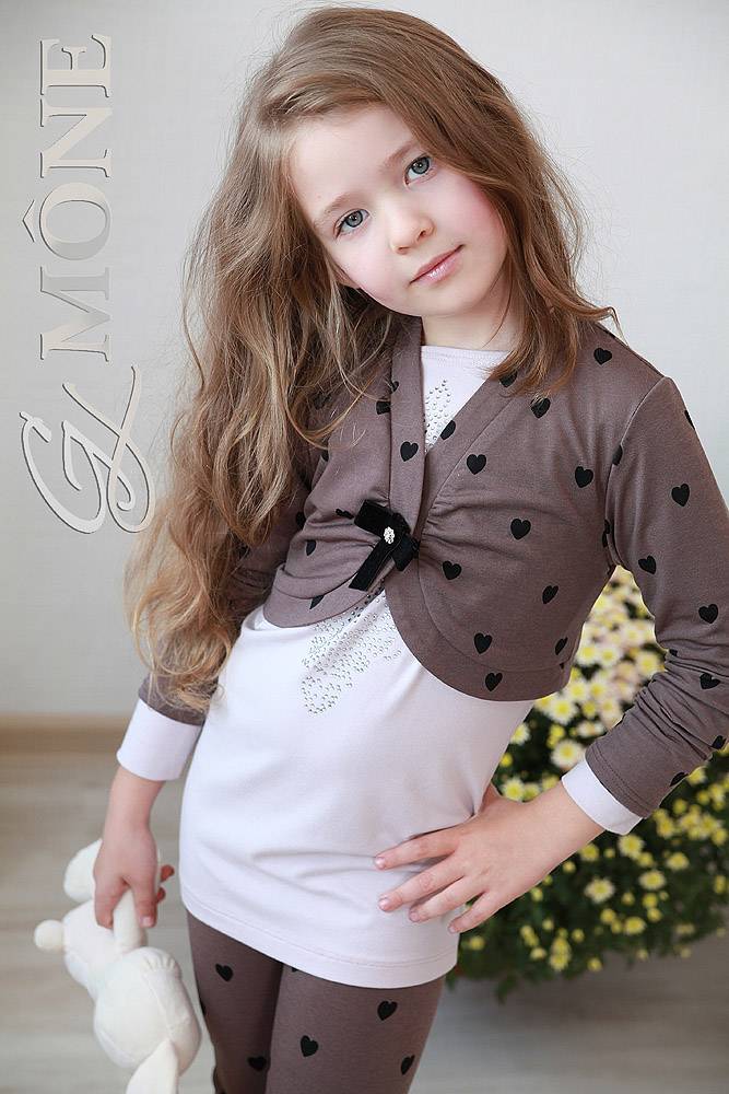 Болеро для девочки украшенное декоративным элементом. Состав: 60% коттон, 40% вискоза.