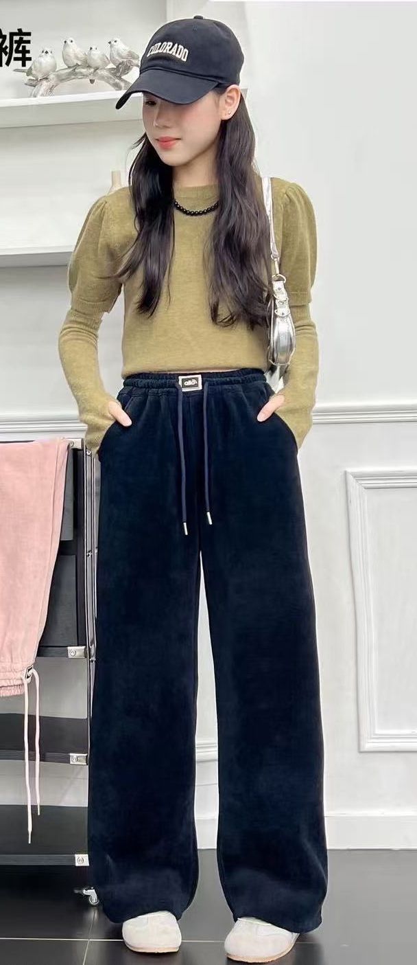 Утеплені штани-палаццо для дівчат-підлітків на велюрі Gobolina Baby 8823, колір чорний - це новинка сезону осінь-зима 2025. Дуже комфортна модель на резинці з трикотажу. Трендова модель обов`язково сподобаєтся модникам. Чудово поєднуються зі світшотами, футболками та худі.