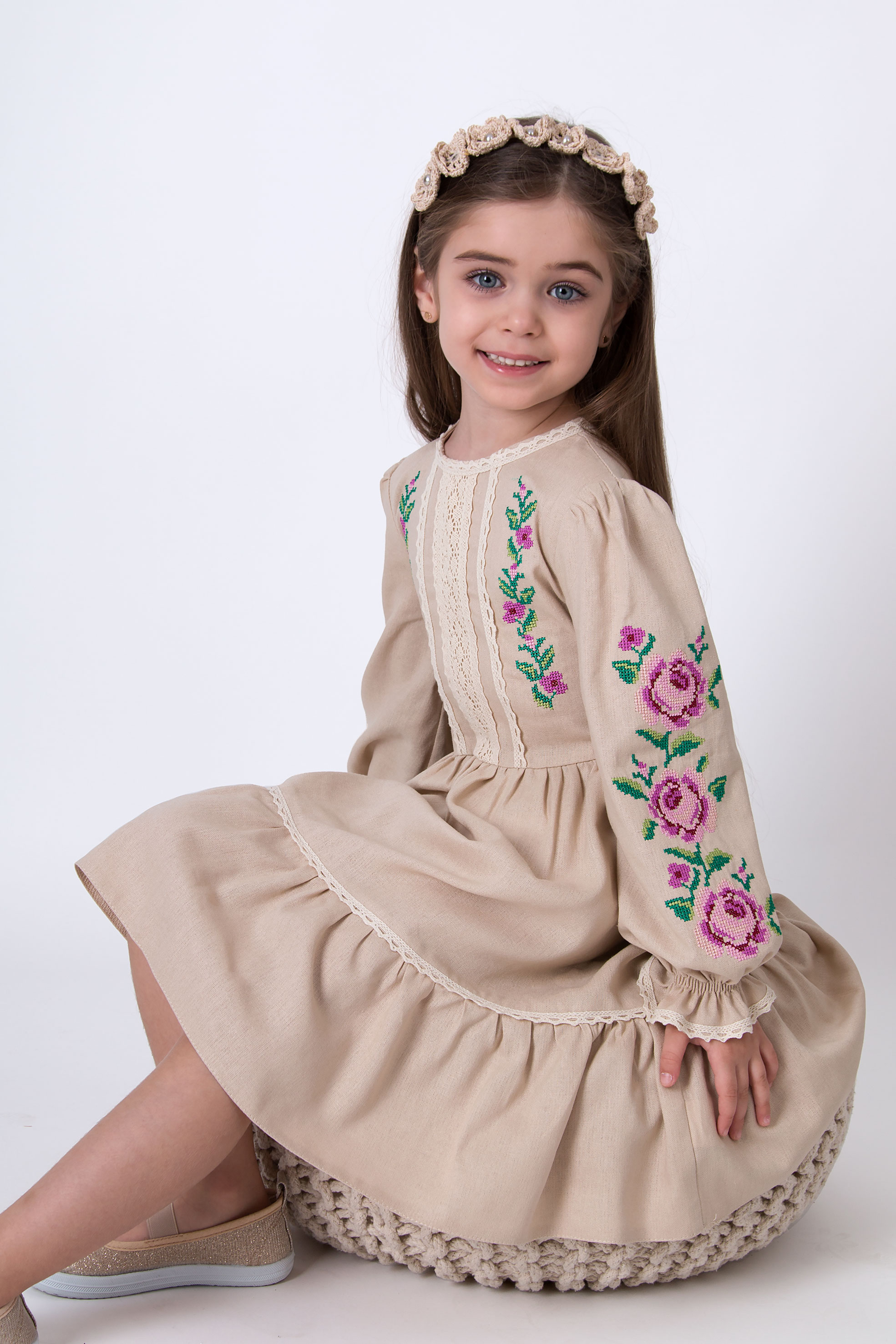 Вишиване плаття для дівчат Mevis 5213, колір бежевий