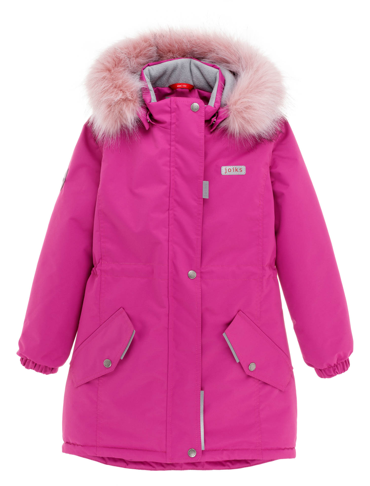 - Капюшон на куртках регулируется по высоте, что дает ребенку максимальный обзор и комфорт. при необходимости капюшон можно отстегнуть. Joiks обеспечили капюшон специальной мягкой вставкой для защиты нежного детского подбородка от натирания, при этом замок молнии прячется в специальный кармашек. Мех на капюшоне съемный.