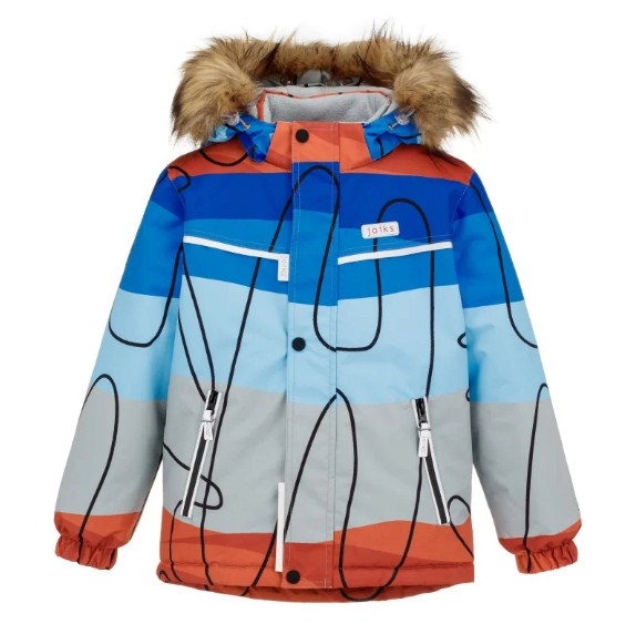 Зимова дитяча куртка-парка для хлопців Joiks В-57, колір синьо-помаранчевий з високими теплоізоляційними властивостями та додатковими захисними функціями:
